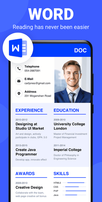 Pembaca Dokumen: PDF DOC XLSadalah perangkat lunak gratis untuk Android, yang termasuk dalam kategori 'Bisnis & Produktivitas' .